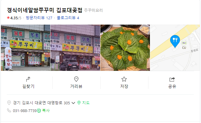 목적지는 '경식이네 알쌈쭈꾸미 김포 대곶점'