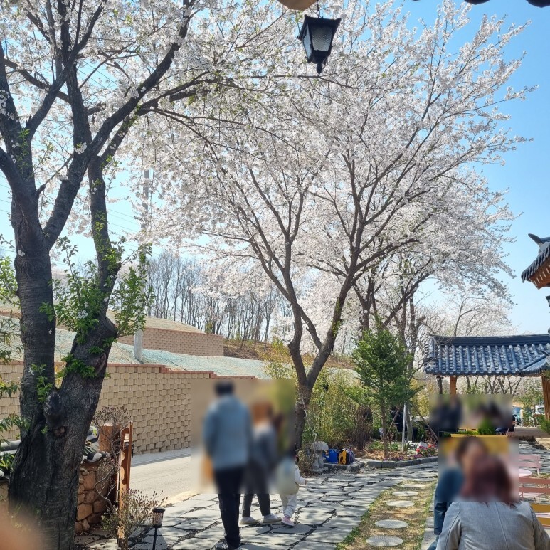 눈앞에 나타나는 한옥과 예쁜 벚꽃나무