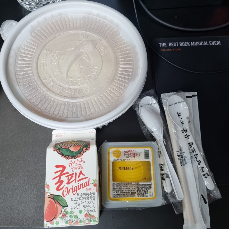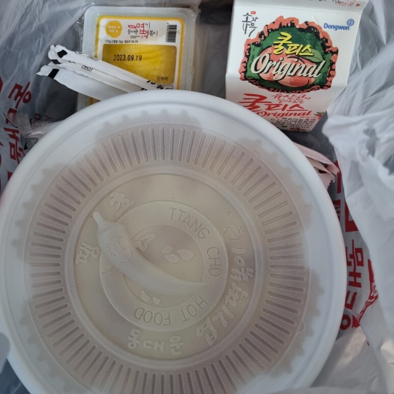 구성품 엽기떡볶이 쿨피스 단무지 일회용수저젓가락!