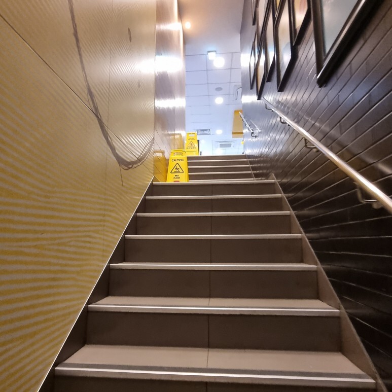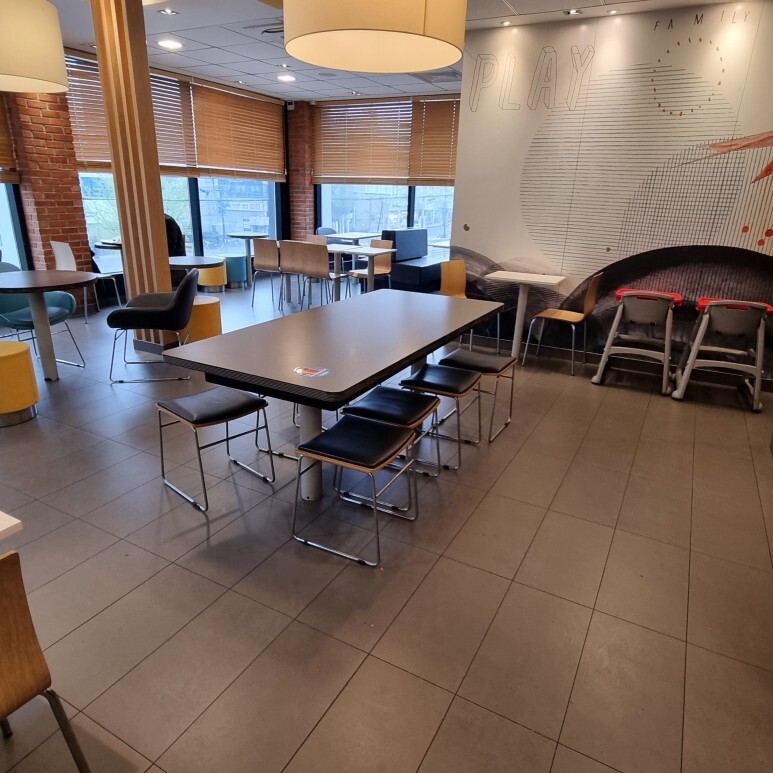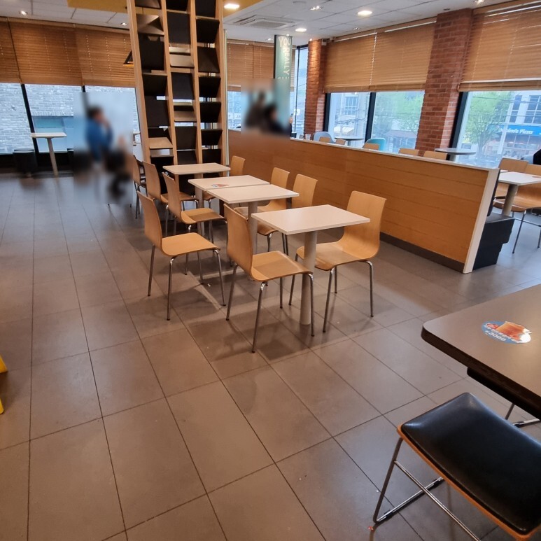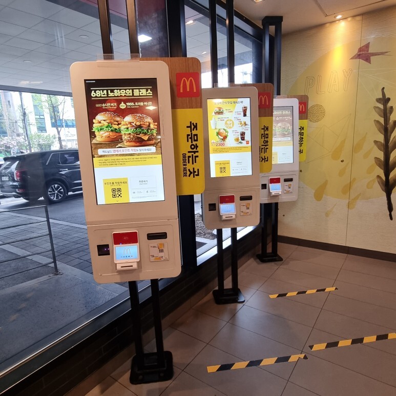 키오스크 3대가 있고 좌석이 몇개 있다.