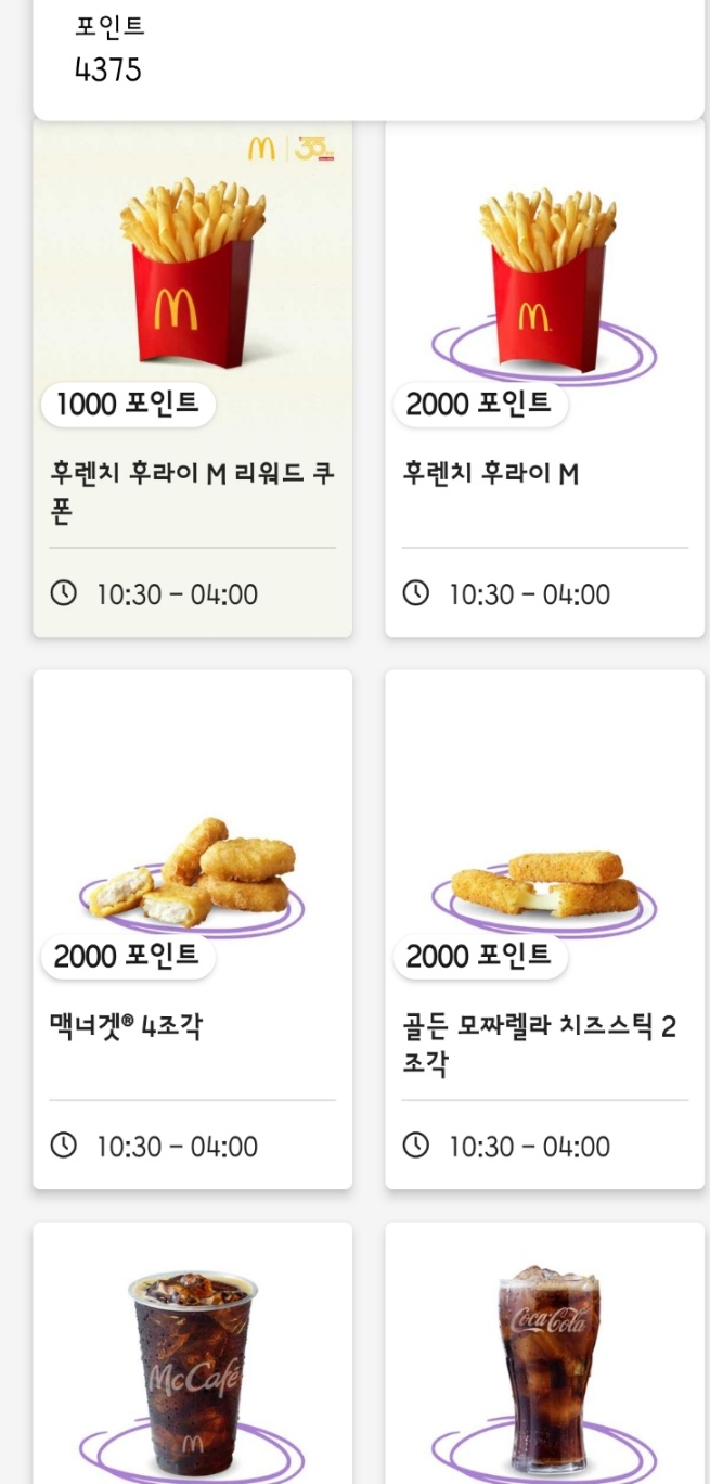 쿠폰 아래쪽으로 내려가면 포인트로 먹을 수 있는 것들도 나온다.