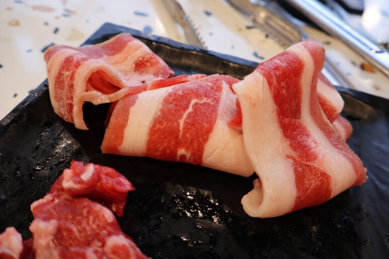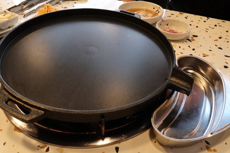 불판이 이렇게 살짝 기울어져 있어 기름 빠지기 아주 좋다!